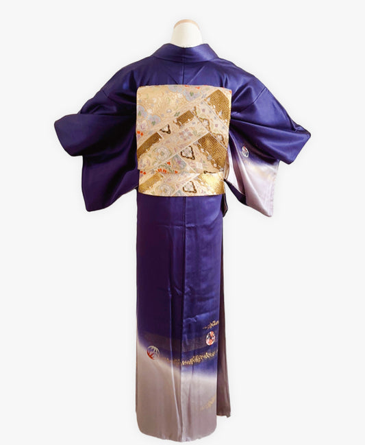 紅桔梗 紫系 暈し染め 駒刺繍 金彩 花草 雪輪 訪問着レンタル FW706